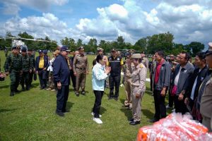 นายกรัฐมนตรี นางสาวแพทองธาร ชินวัตร ลงพื้นที่อำเภอน้ำยืน จังหวัดอุบลราชธานี มอบถุงยังชีพและให้กำลังใจแก่กำลังพลและชุดรักษาความปลอดภัยหมู่บ้าน (ชรบ.) เพื่อสร้างขวัญและกำลังใจในการปฏิบัติหน้าที่ดูแลความสงบเรียบร้อยและความปลอดภัยของประชาชนตามแนวชายแดนไทย-กัมพูชา โดยมีแม่ทัพภาคที่ 2 และกองกำลังสุรนารีร่วมให้การต้อนรับและสนับสนุนภารกิจในครั้งนี้ พร้อมยืนยันความมุ่งมั่นของรัฐบาลในการยึดประชาชนเป็นศูนย์กลางและร่วมกันสร้างความมั่นคงในพื้นที่ชายแดน